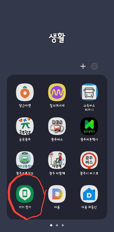 저는 생활 폴더에 보관했습니다. 아이콘 이름은 '기기찾기'로 되어 있군요.