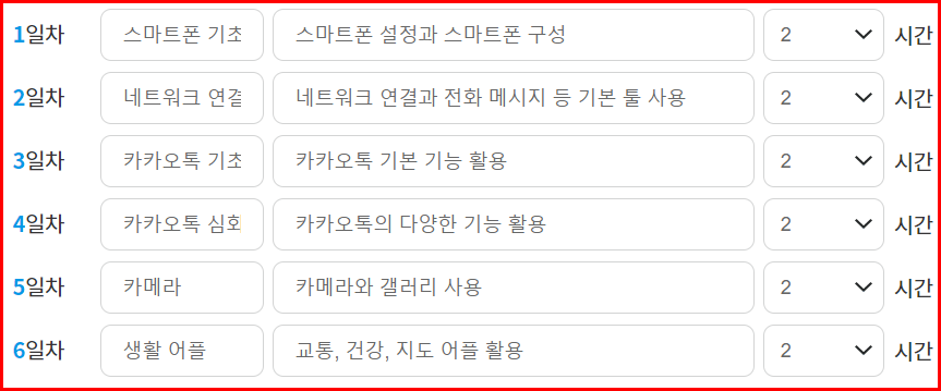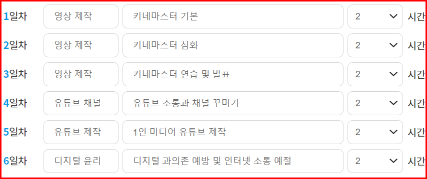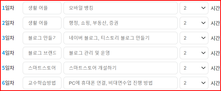 디지털배움터 '교육과정 요청'에는 세 과정으로 나눠서 요청했습니다. 난이도에 따라 1~3 과정으로.