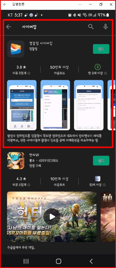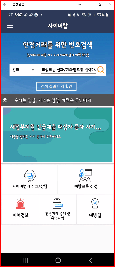 경찰청사이버캅은 위험 문자나 전화를 알려주는 경창청 서비스 어플입니다.
