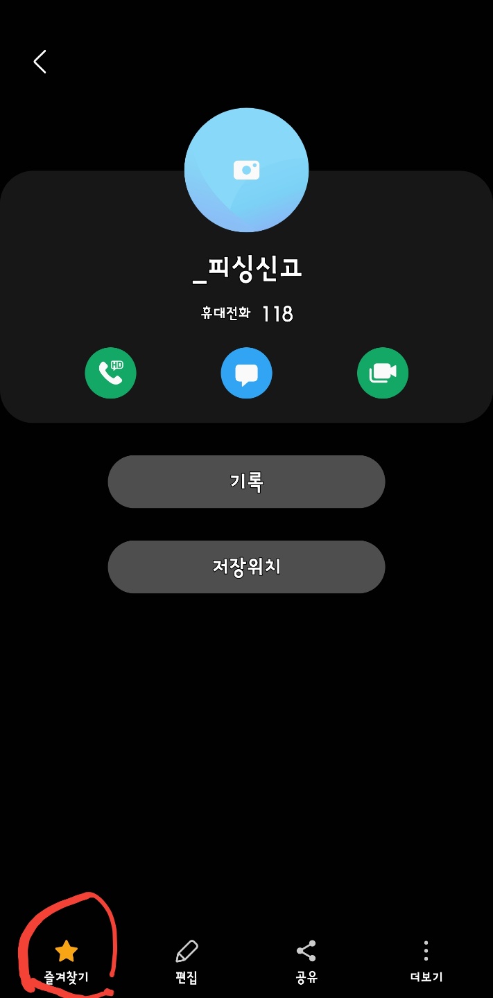 연락처 번호 정보에서 아래와 같이 별표(즐겨찾기)를 선택합니다.