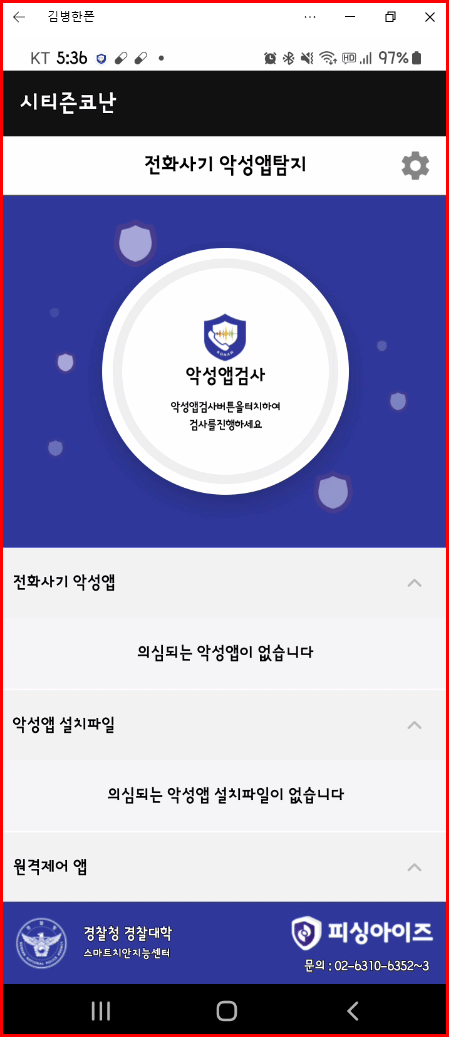 위 두 앱은 경찰청에서 제공하는 피싱 예방 앱입니다. 시티즌코난은 악성앱을 찾아내는 어플입니다.