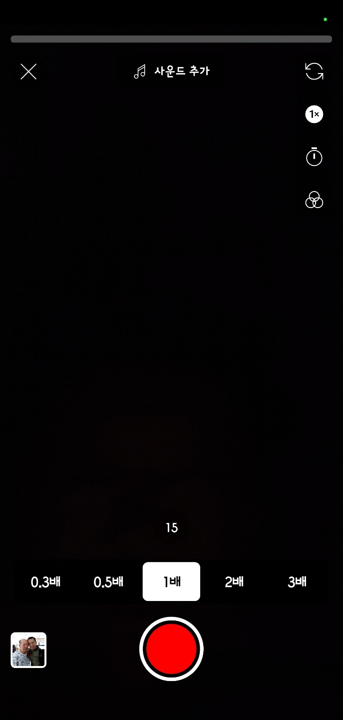 영상을 찍기 위해서는 아래 빨간 버튼을 선택합니다. 카메라 방향은 우상향에 화살표 두개 그려진 아이콘으로 변경합니다. 대상이 선택되면 시작합니다. 이미 촬영한 영상을 사용하려면 왼편 미리보기 창에서 고르면 됩니다. 빨간 버튼 위 '15'란 숫자는 영상 시간입니다.