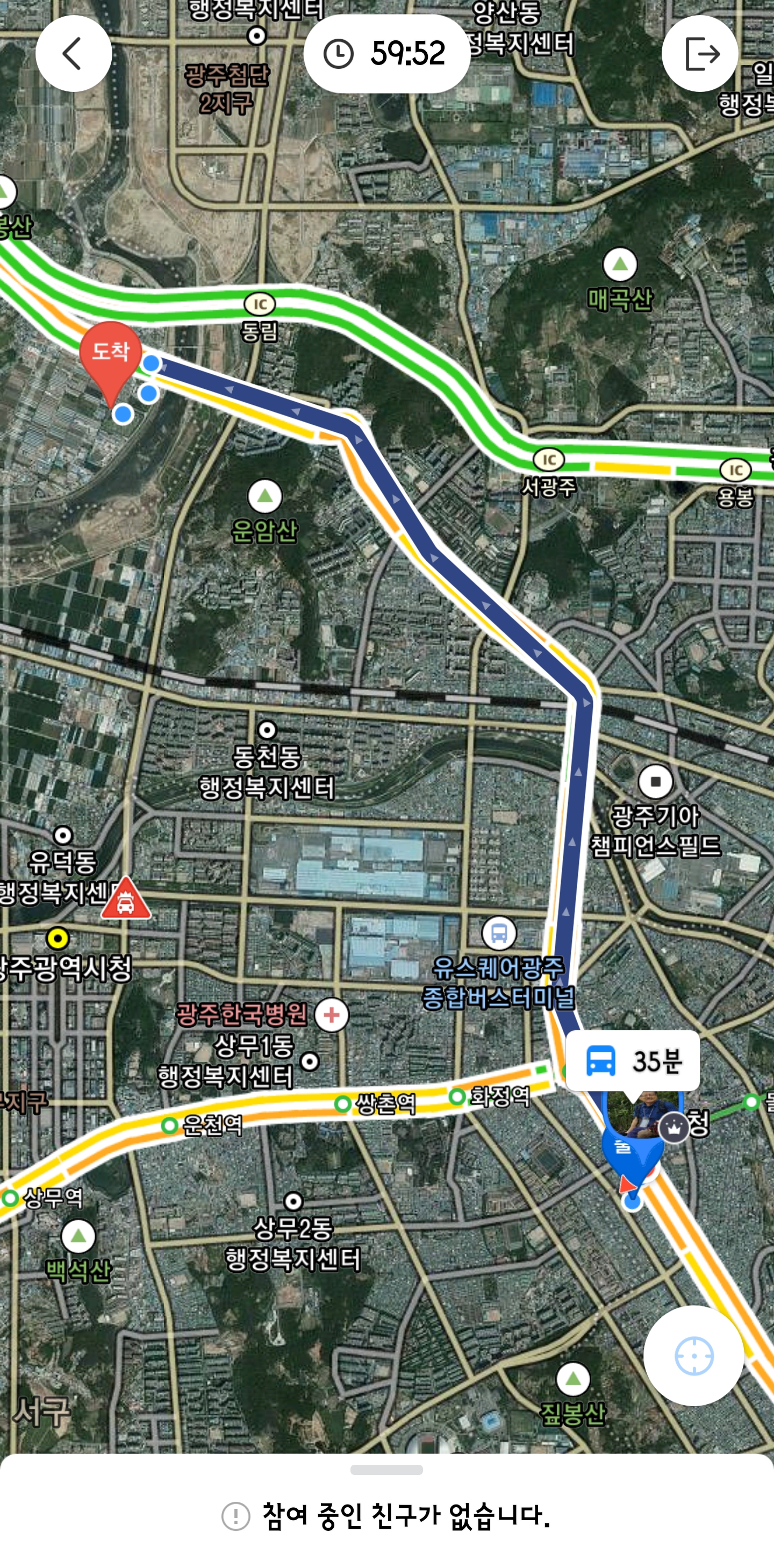 위치를 공유하면 친구의 프로필 사진이 지도에 표시되고 실시간으로 위치가 달라지면서 서로 위치를 공유하게 됩니다. 버스길을 타고 가면서 내 프로필도 옮겨질 겁니다.