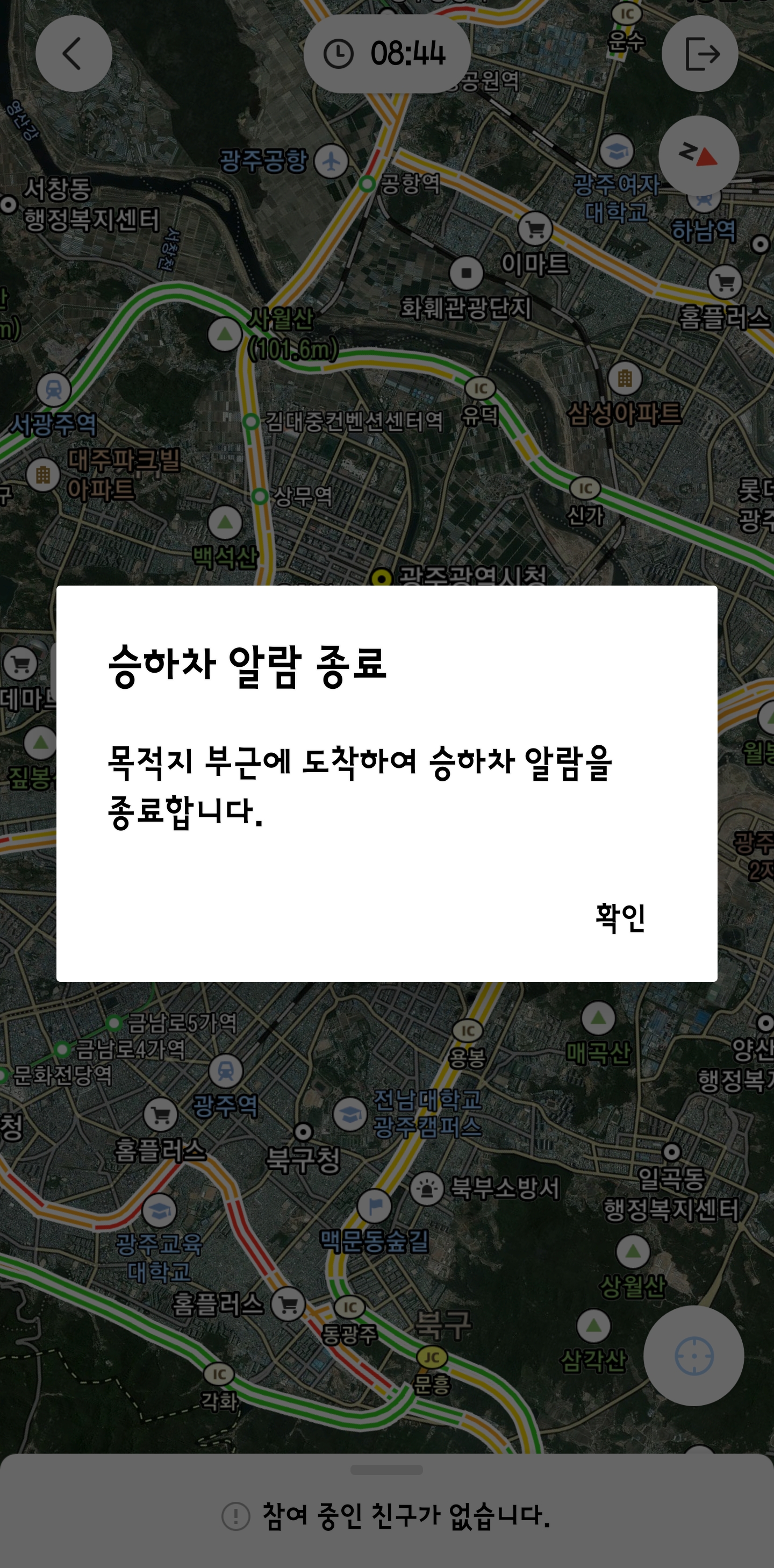 목적지인 병원에 도착했을 때, [승하차 알람 종료]를 알려오면서 미션을 마치군요.