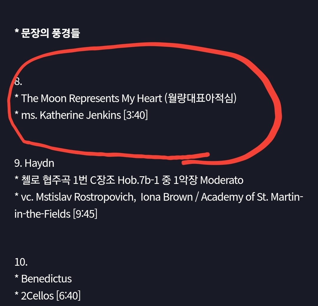 답은 메조소프라노의 캐서린 젠킨스의 '월랑대표아적심'이란다.