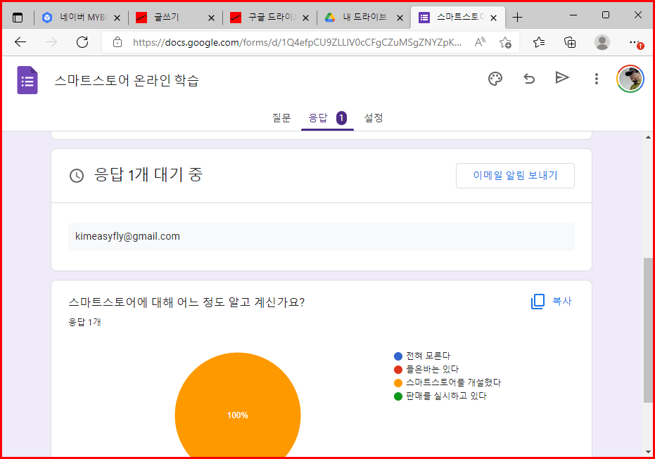 구글 설문지는 온라인에서 작성되어 설문 결과까지 온라인으로 모두 해결하는 도구입니다.