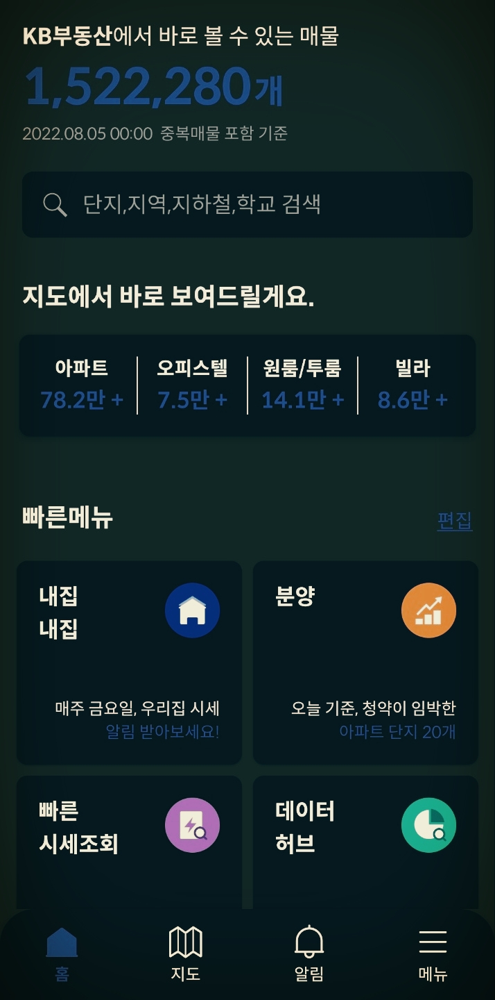 국민은행이 부동산업에 끼어든 경우네요. 포털과 비슷한 파워로 출발했는데 아직 특이점은 발견되지 않군요. 은행 정보력과 자금력을 바탕으로 뭔가 일을 낼 것 같은 느낌은 드는군요.