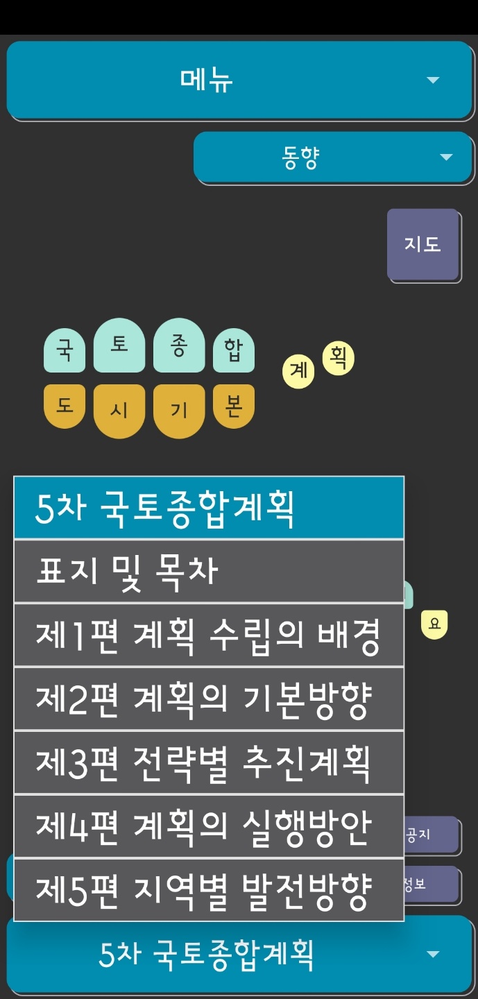 제목 그대로 '국토종합계획'을 소개하는 어플입니다. 국토종합계획과 도시기본계획의 큰 갈래가 있습니다.