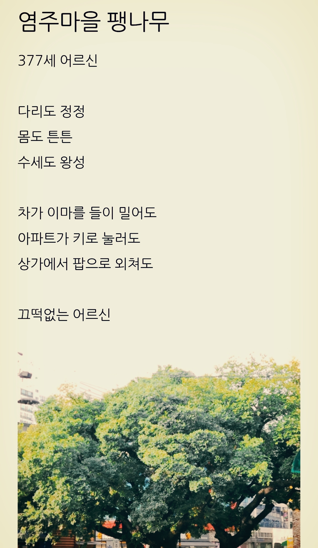 인근은 아파트와 상가로 꽉 채워져 겨우 나무 하나 운신할 공간이지만 보호수 대접을 받는 팽나무 수세는 우람하기만 하다. 자연의 위대함을 새삼 느끼며 집으로 오자마자 컴퓨터에서 김 교수가 건넨 자료를 연결했다.
