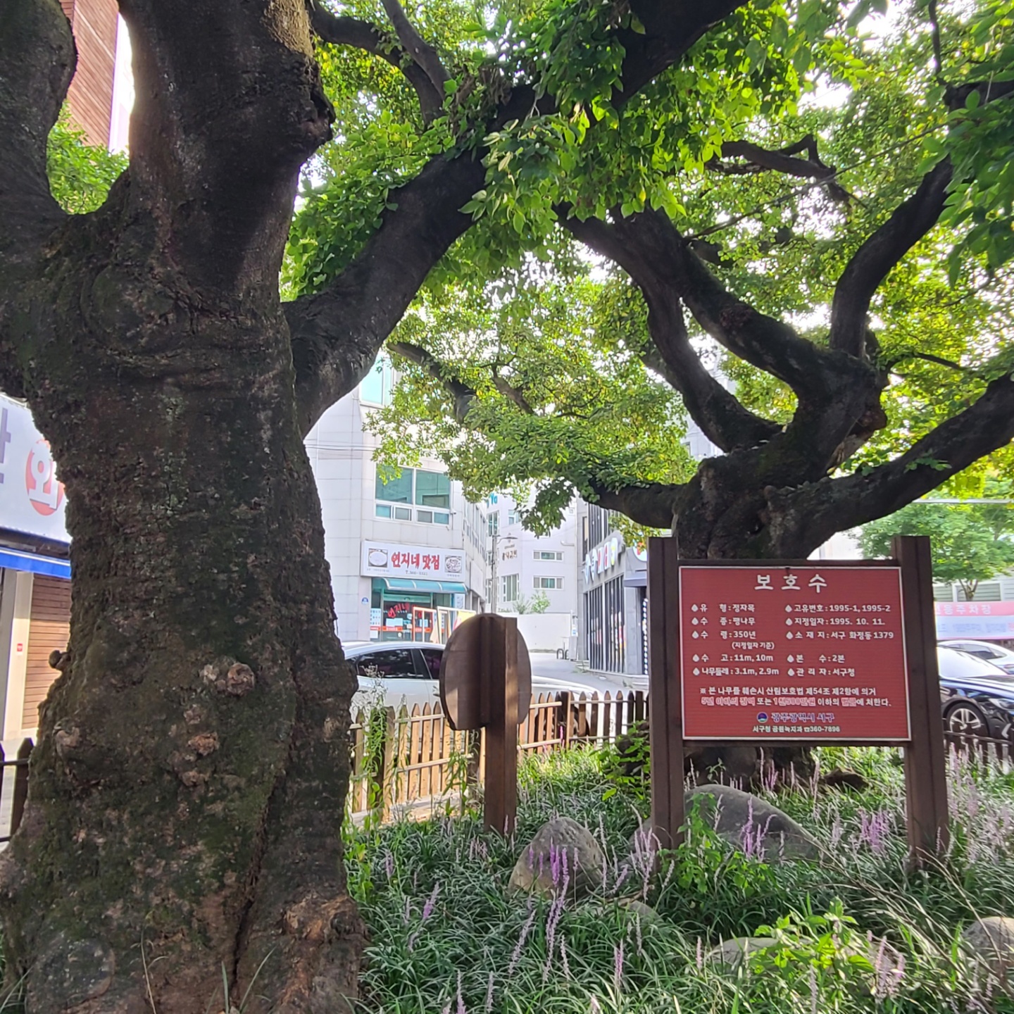 아래 보호수 위치를 여러 경로로 검색하다 구글에 의존하게 됐다. 지정일자 기준 350년 된 수령이니 지금으로 환산하면 377년이 된 셈이다. 물론 정확한 숫자는 아니리라. 찾아보니 볼모로 잡혔던 소현세자가 돌아와 그해 5월에 급사한 해이기도 하다. 당시부터 지금까지 저 자리를 지킨 나무를 명패 하나로 지나치기는 아쉽다.