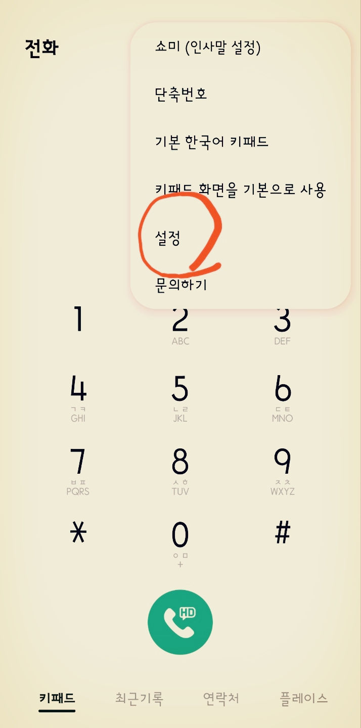 전화 앱의 우상단 '점 세 개' 더보기를 선택하여 '설정'을 들어갑니다.