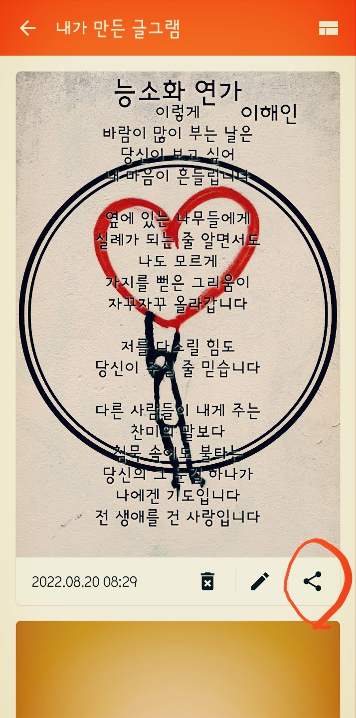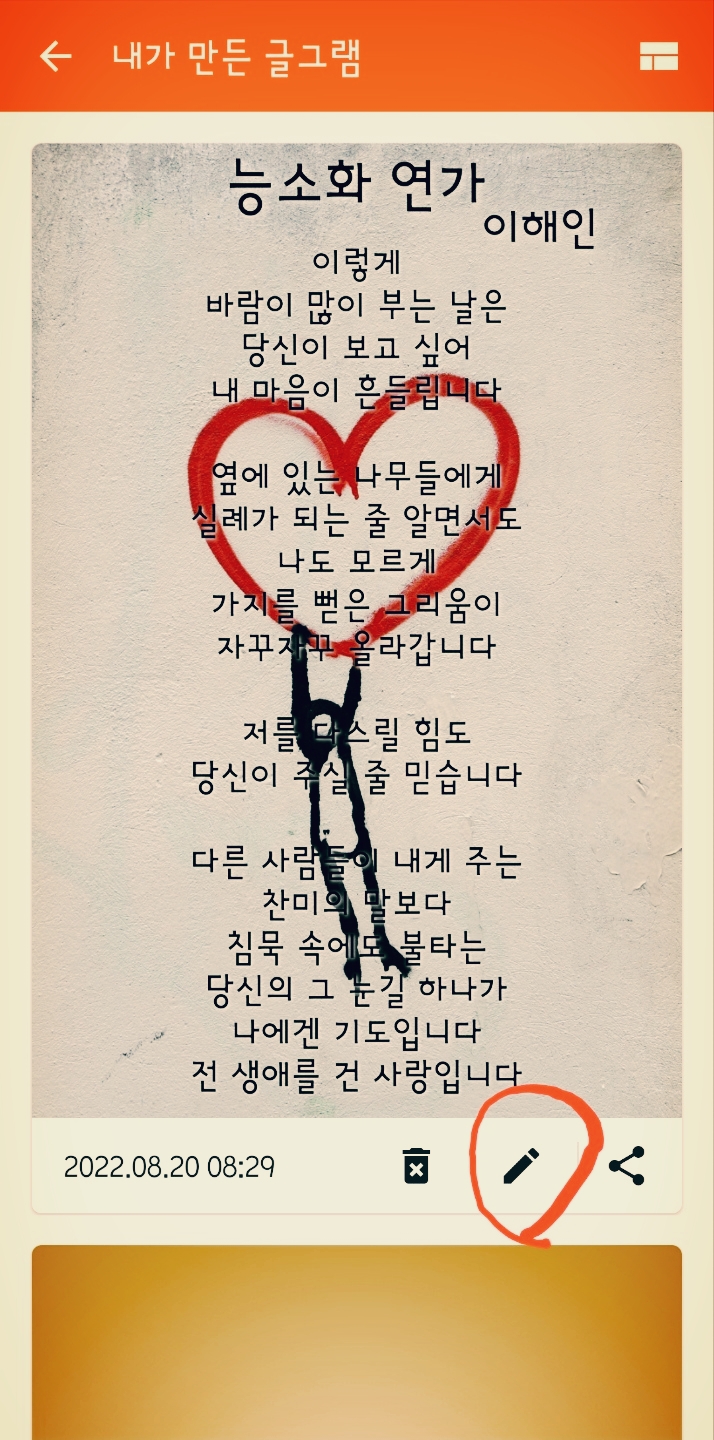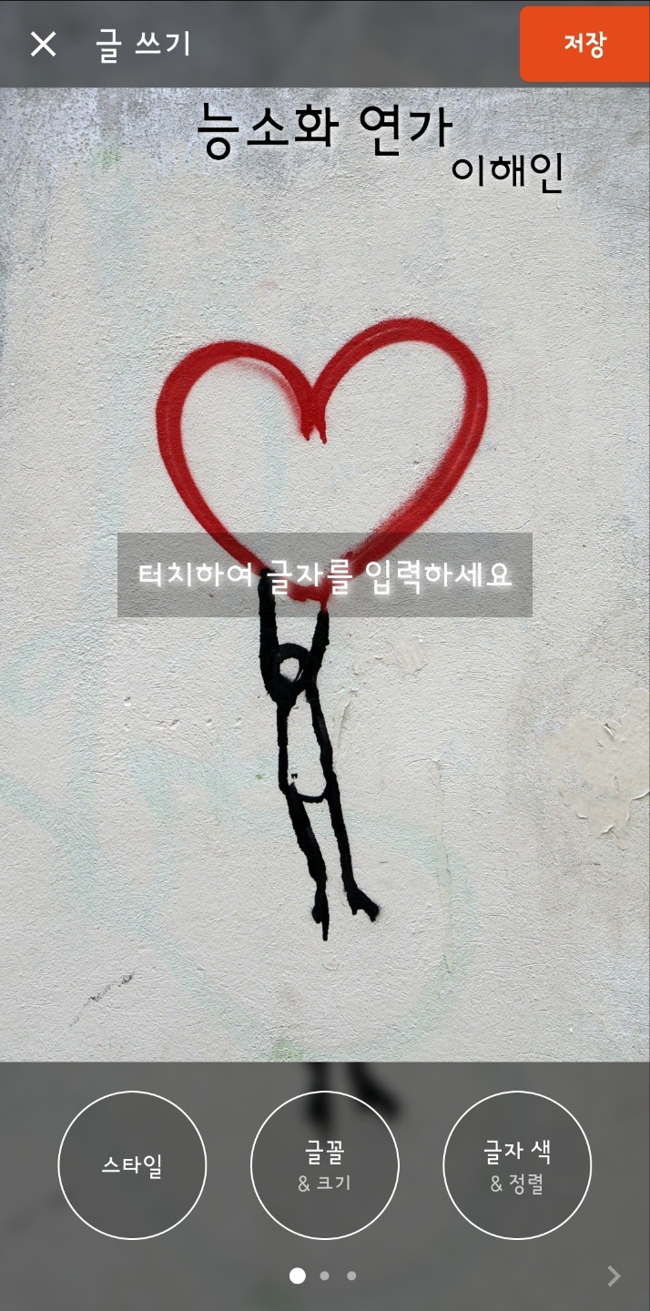 만들어진 결과물은'내가 만든 글 그램'을 통해 '재활용' 할 수 있습니다. 불러낸 이미지를 '편집'을 거쳐 가공합니다. 저는 스타일을 바꿨습니다.