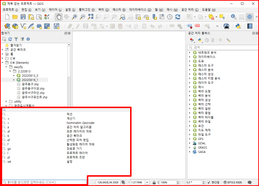 QGIS 사용자 인터페이스