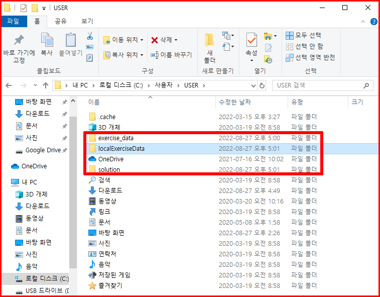 QGIS에서 제공한 데이터 파일을 내려 받습니다. 내려받은 압축 파일을 풀어 사용자의 홈 폴더에 배치합니다. 홈 폴더는 일반적으로 'C:\Users\[USER]'로 되어 있습니다. 'C:\Users\[USER]\exercise_data'폴더에는 앞으로 실습할 샘플 데이터 파일이 있습니다. 그리고 과제를 해결한 파일은 'C:\Users\[USER]\solution'에 보관하도록 하겠습니다. 지역 자료는 'C:\Users\[USER]\localExerciseData'에 보관하겠습니다.