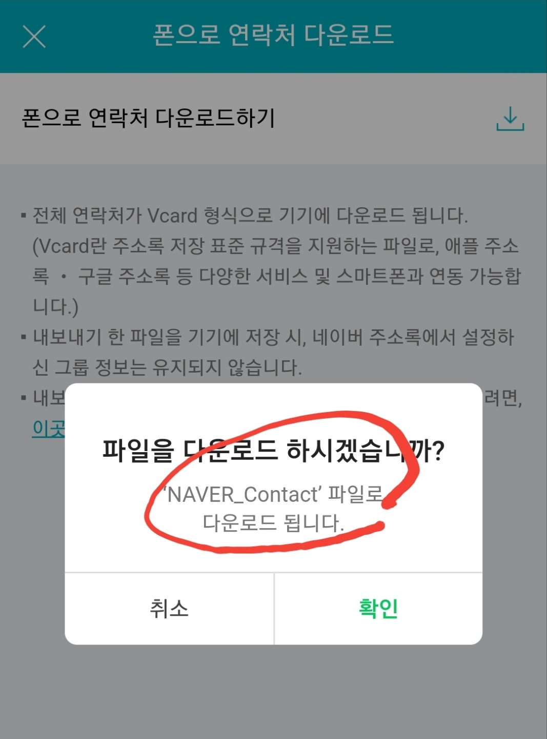 네이버 전화번호 다운로드