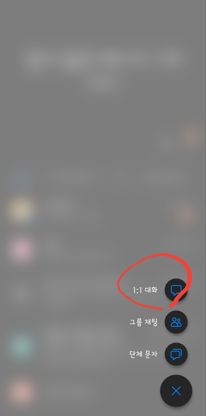 어떤 종류의 메시지를 보낼 거냐는 선택창이 뜹니다. '1:1 대화'를 선택합니다. 여러 사람에게 같은 문자를 보낼 때는 '단체 문자'를 선택합니다.