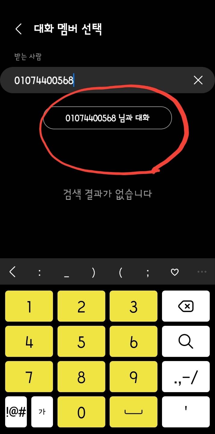 메시지 어플에서 전화번호만 아는 사람에게 메시지를 보내는 경우.