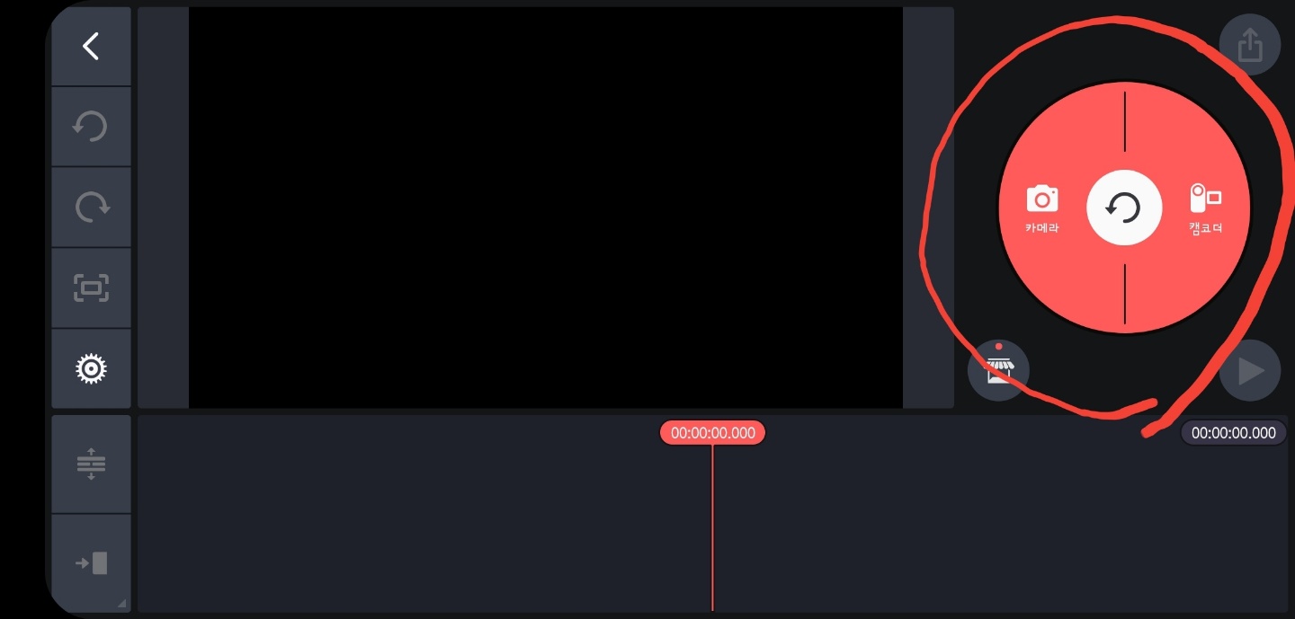 잘 보십시오. 딱 하나의 버튼만 살아 있습니다. '미디어' 버튼입니다. 여기서 '미디어'란 사진과 동영상을 말합니다. 또 하나의 가능성이 있네요. '미디어' 버튼 아래 '카메라'입니다. 키네마스터에서 바로 촬영할 수 있습니다.
