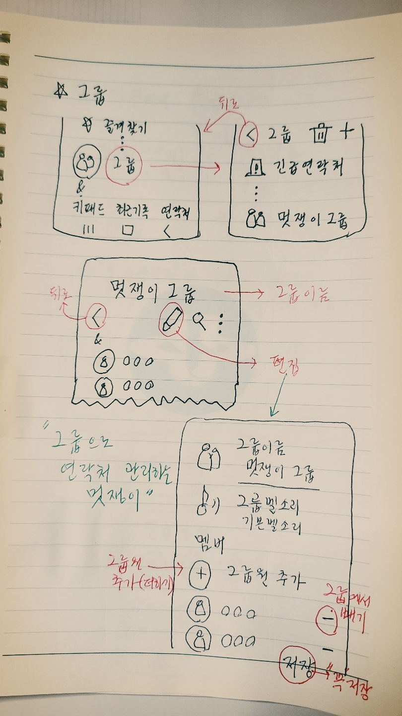 새 그룹을 만드시려면 '더하기'를 사용하세요. 휴지통 옆에 더하기(+)가 보이죠. 생성된 그룹을 관리하시려면 해당 그룹을 선택하세요. '딱'입니다. '연필'을 선택하면 '편집'을 할 수 있습니다. 그룹 이름을 바꿀 수도 있고, 멤버를 추가하거나 삭제할 수 있습니다. 여기서 '삭제'는 그룹 멤버에서 삭제를 의미합니다. 결코 연락처가 없어지는 것은 아닙니다. 멤버에서 빼고 싶으면 이름 옆에 있는 '-' 버튼을 '딱' 치면 됩니다.