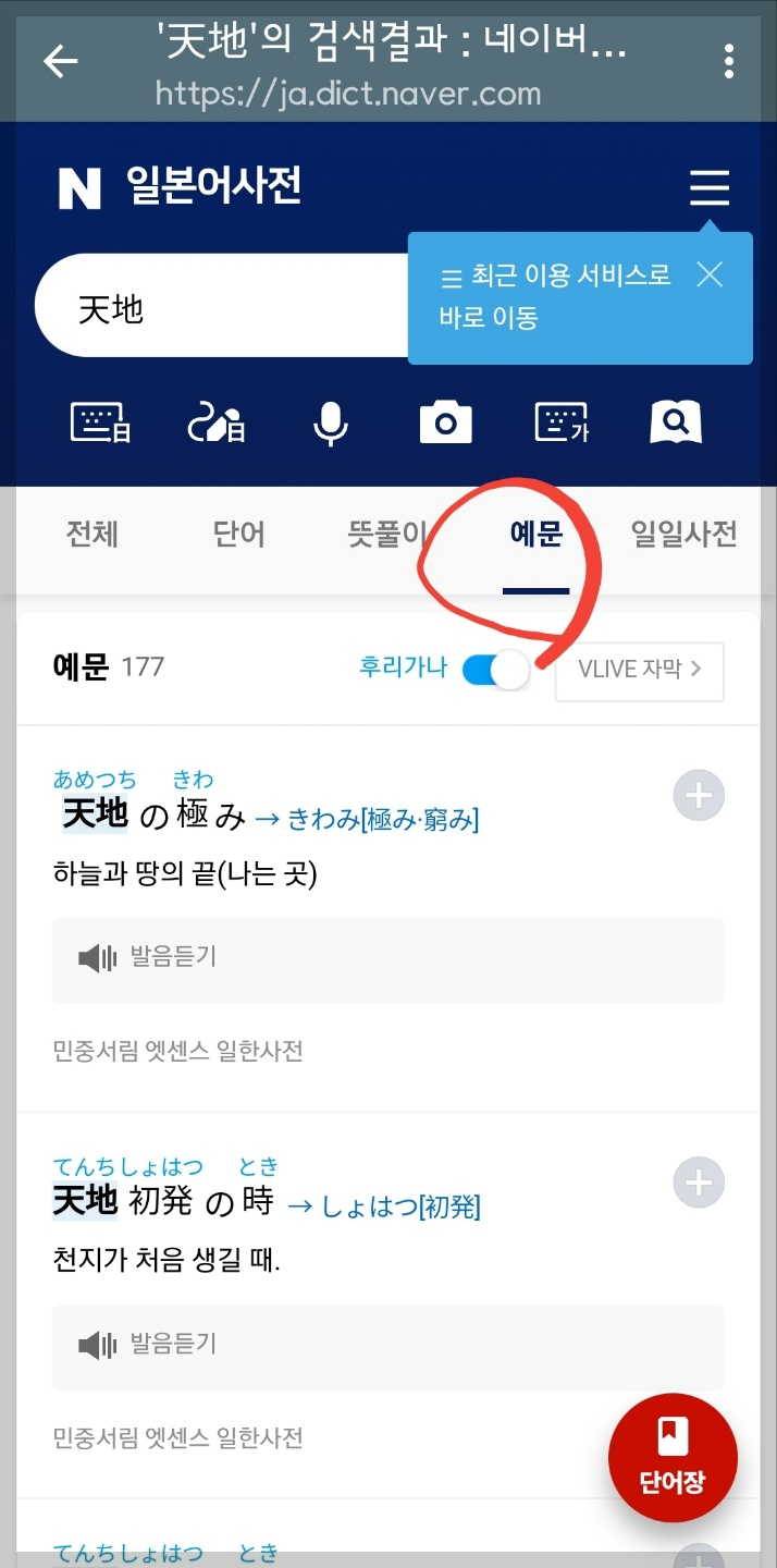 네이버 일본어 사전에서 예문