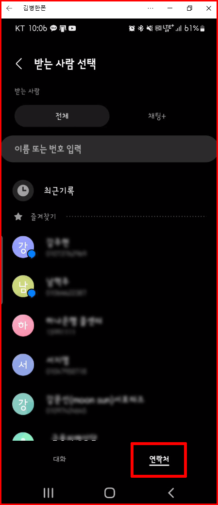 | 공유 | 메시지 앱의 연락처 |