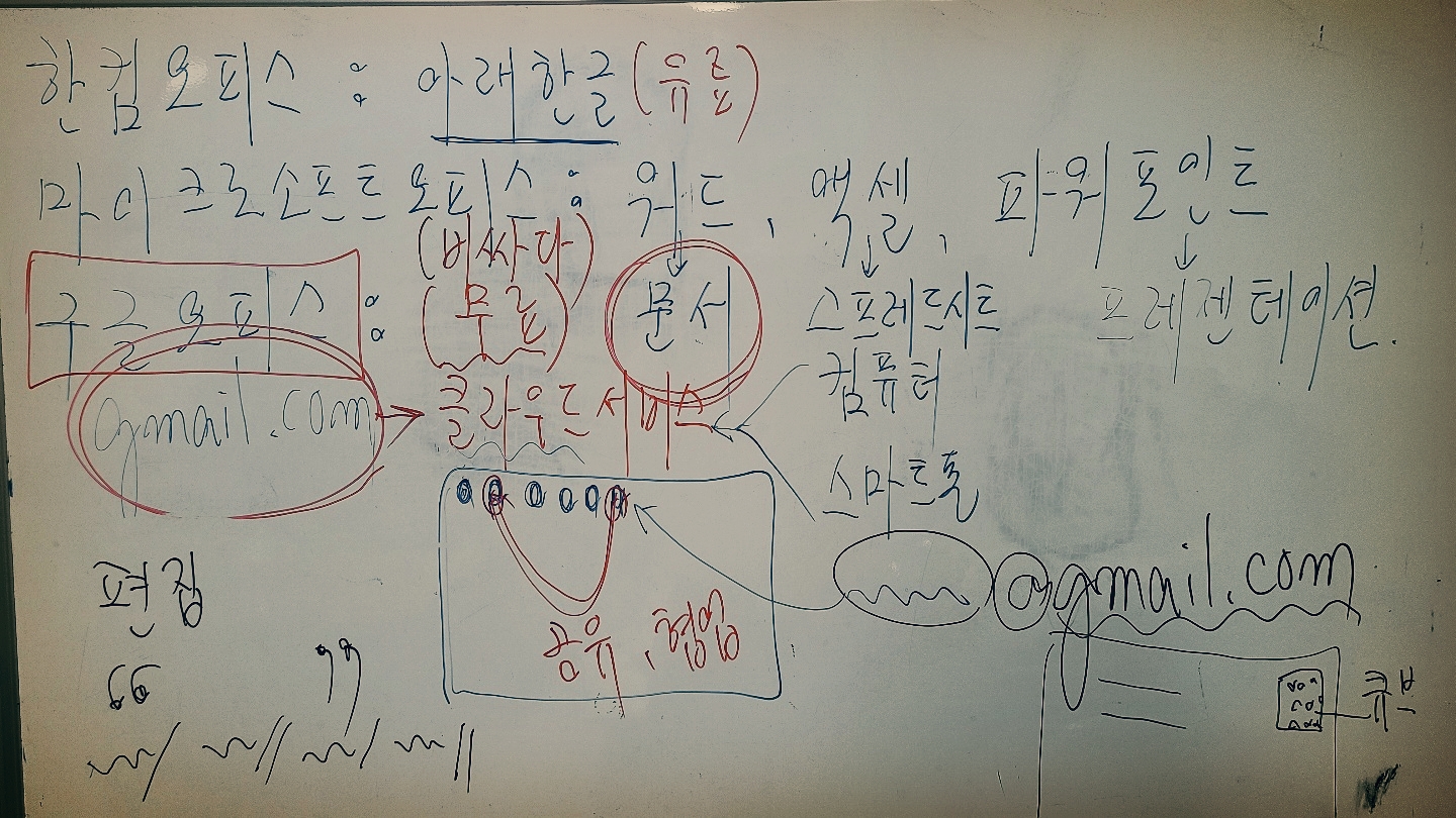 컴퓨터에서 구글문서를 사용하는 경우가 문제인데, 지메일만 잘 기억하고 활용법을 익히면 땡입니다. 즉 클라우드에 있는 Gmail.com이라는 컴퓨터의 자기 방(아이디)에 대한 개념만 잡히면, 무리 없이 사용할 수 있습니다. 물론 끝낼 때는 반드시 로그아웃이 필요합니다.