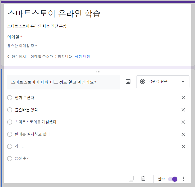 구글 설문지 작성에 대한 간단한 요약이었습니다.