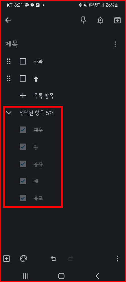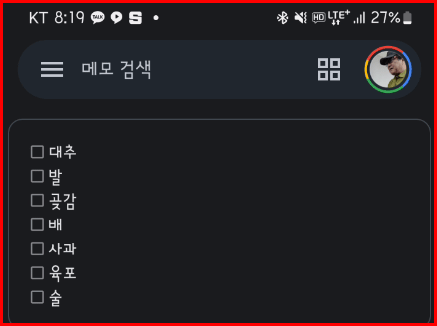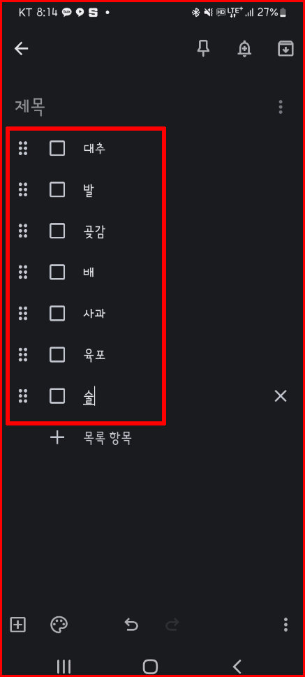뒤로 빠져 나가면 저장되어 아래와 같이 체크 리스트가 만들어 집니다.