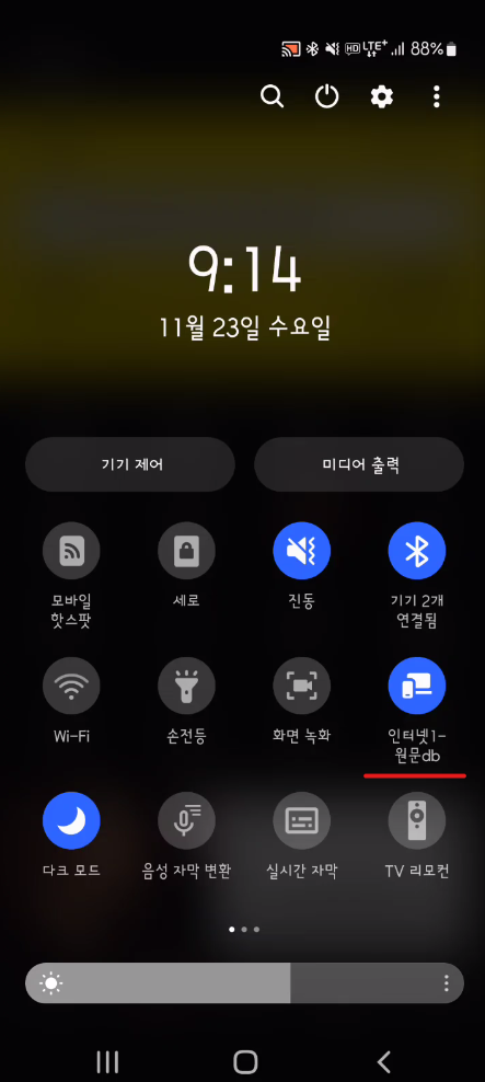 위 그림은 안드로이드 퀵패널에서 '윈도우즈 연결'이 된 상태입니다. 연결된 후에는 아이콘의 이름이 연결된 컴퓨터 이름으로 변경됩니다.
