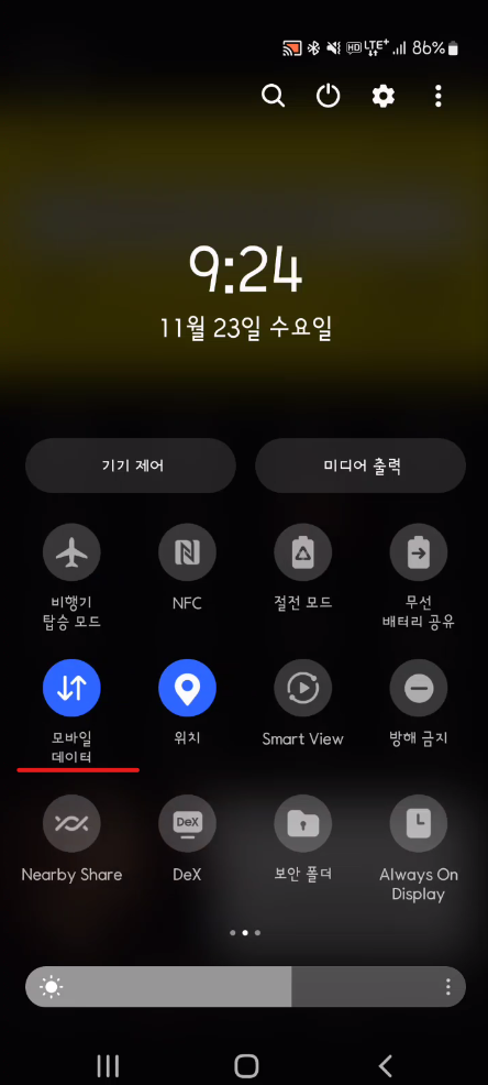 안드로이드 폰의 퀵패널을 확장하면 다음과 같은 2~3페이지의 '빠른 설정' 창이 나옵니다. 퀵패널이란 안드로이드 폰 상단에 있으면서 손가락으로 상단을 가볍게 아래로 끌면 나타나는 자주 사용하는 설정들이 되겠습니다. 처음에 나타나는 항목은 6개지만 다시 아래로 스크롤하면 많은 아이콘들이 네 줄로 정렬되어 나타납니다.