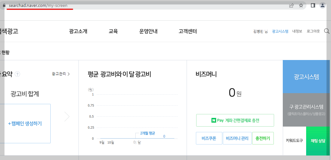 네이버광고는 searchad.naver.com 으로 파워링크를 걸 광고주들을 위한 사이트입니다. 로그인은 네이버계정으로 로그인합니다. 물론 가입이 된 상태에서.