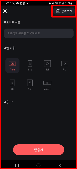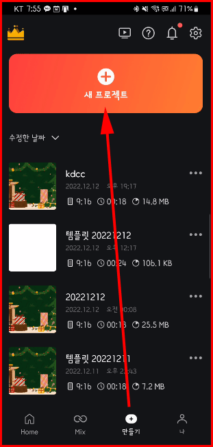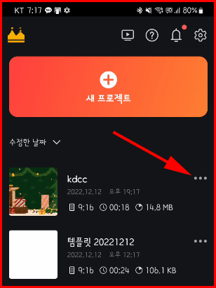 해당 키네마스터 프로젝트 파일을 선택하면 새 프로젝트가 추가됩니다.