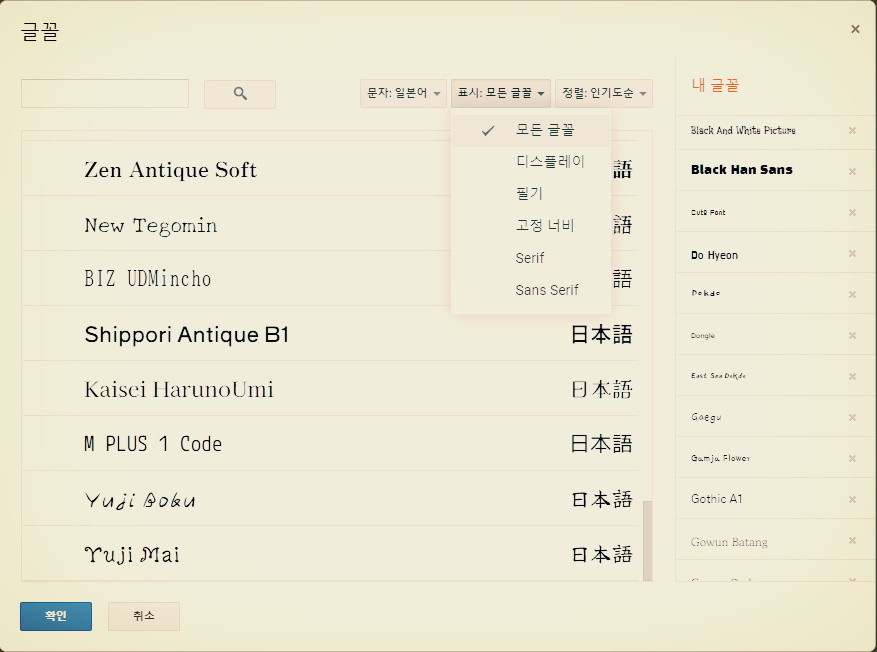 일본어 한자 폰트를 우리글에 적용