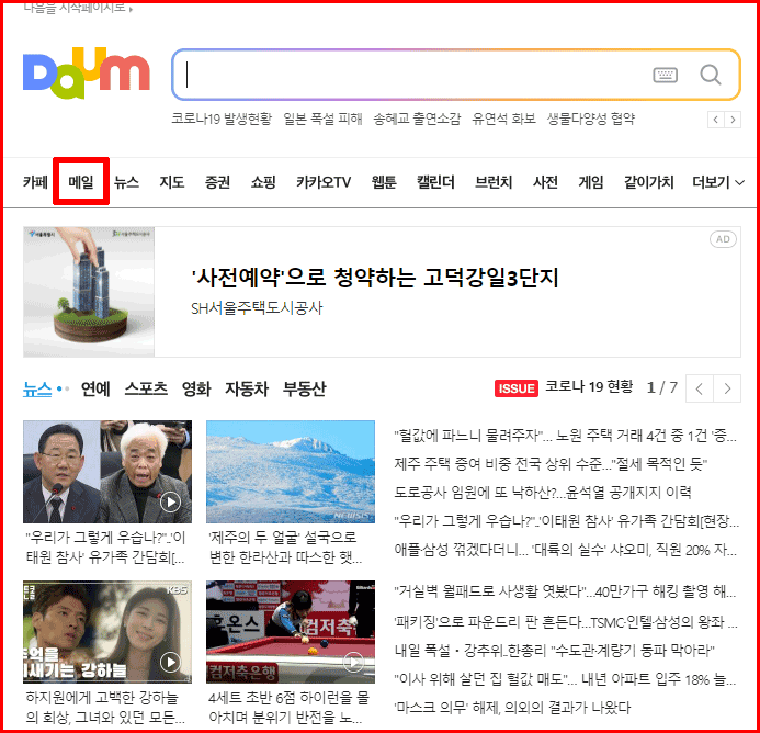 다음 첫화면에서 '메일'을 선택합니다.