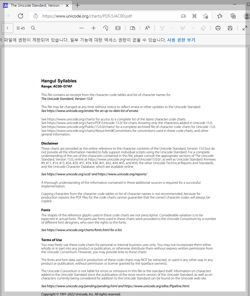 한글 표현에 관한 유니코드 약속입니다.