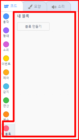 내 블록에서 '블록 만들기'를 선택하면 자신의 블록을 만드는 과정이 진행됩니다.