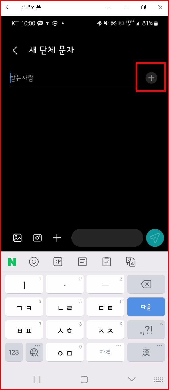 3. 받는 사람 우측의 '+' 표시를 선택합니다.