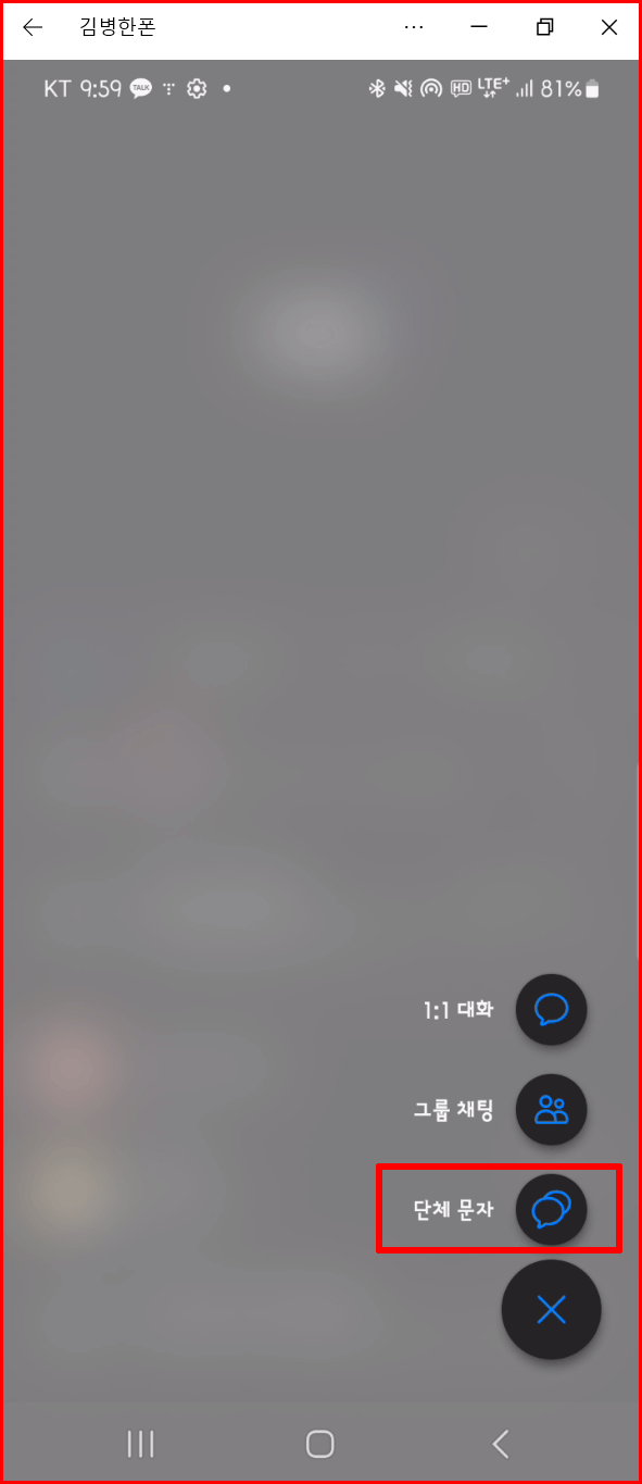 2. '단체 문자'를 선택합니다.(종류나 명칭은 차이가 있을 수 있습니다.)
