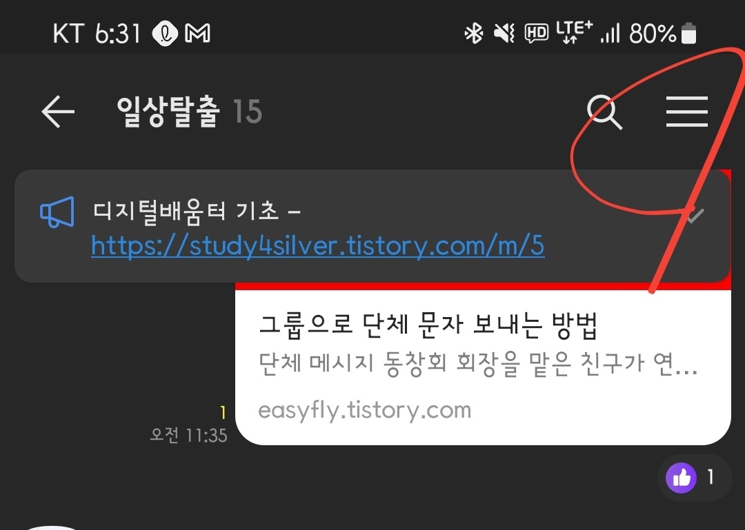 1. 단톡방 입장 후 우상단 '세 줄 더 보기' 선택