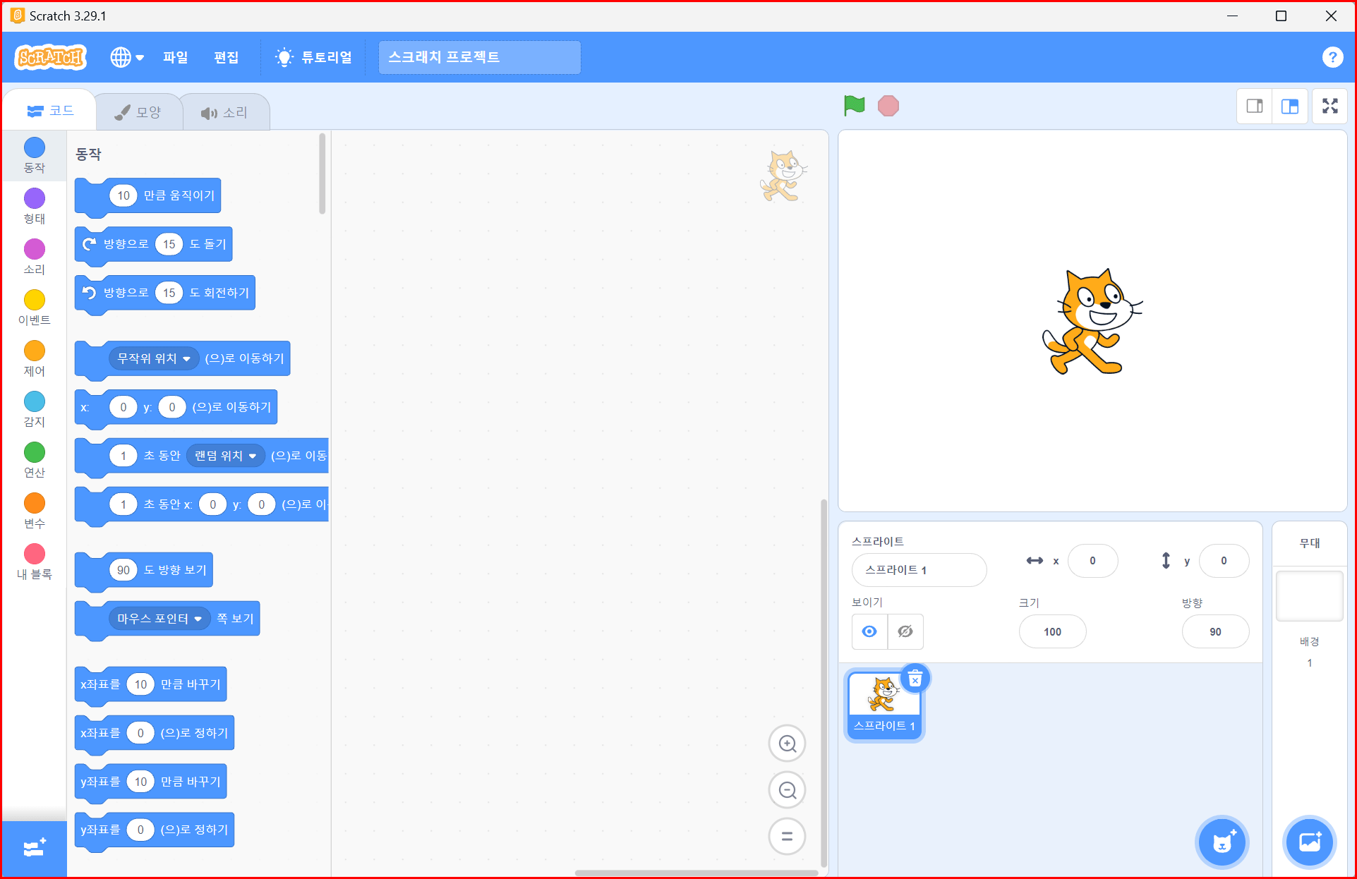 설치가 종료되면서 오프라인 스크래치가 시작됩니다. 2023년 2월 현재 'Scratch 3'입니다.