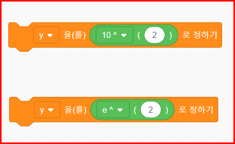 스크래치에서는 밑이 10인 경우와 자연 상수 'e'에 대한 블록은 제공합니다만 일반 제곱 차수에 대한 블록이 없습니다.