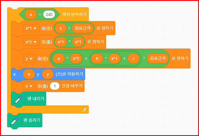 스크래치에서 이차 함수 그래프 그리기