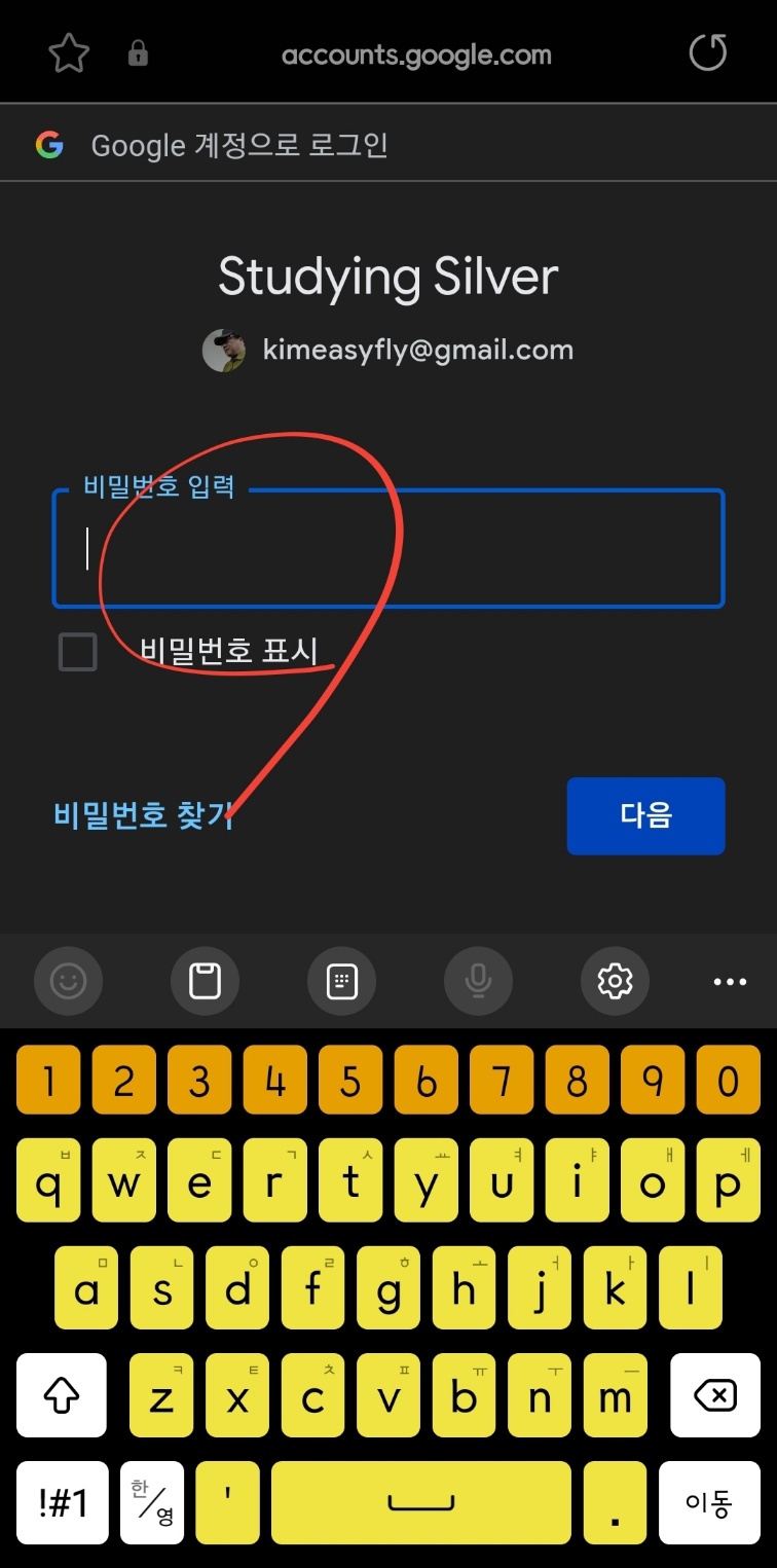 지메일은 5개까지 가능하기 때문에 선택하도록 구글 메일을 보여줍니다. 폰에 등록된 지메일을 선택합니다.