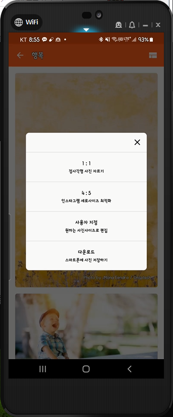 이와 같이 변경해서 사용할 수 있습니다. 변경된 이미지를 사용하기 위해서는 폰에 저장하면 끝.