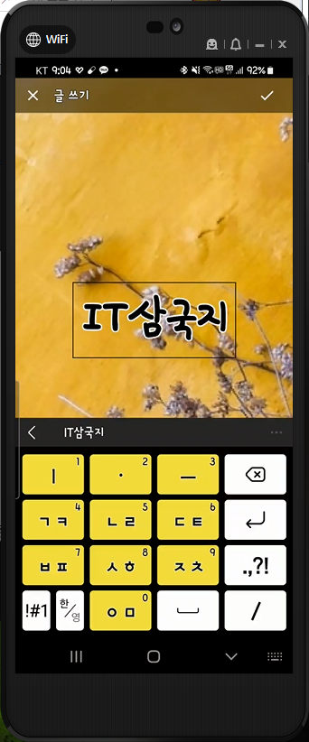 이제 자신이 원하는 글을 작성하면 됩니다. 여기서는 [IT 삼국지]를 써 넣겠습니다.