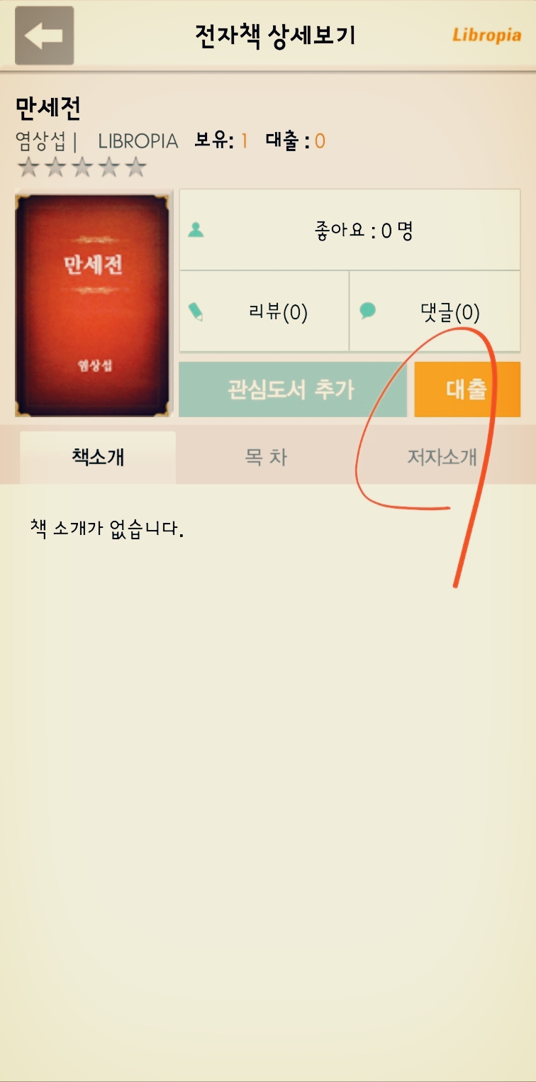 찾아진 전자책에서 '대출'을 선택합니다. 책이 다양하지는 않습니다. 기본 서비스의 한계입니다.