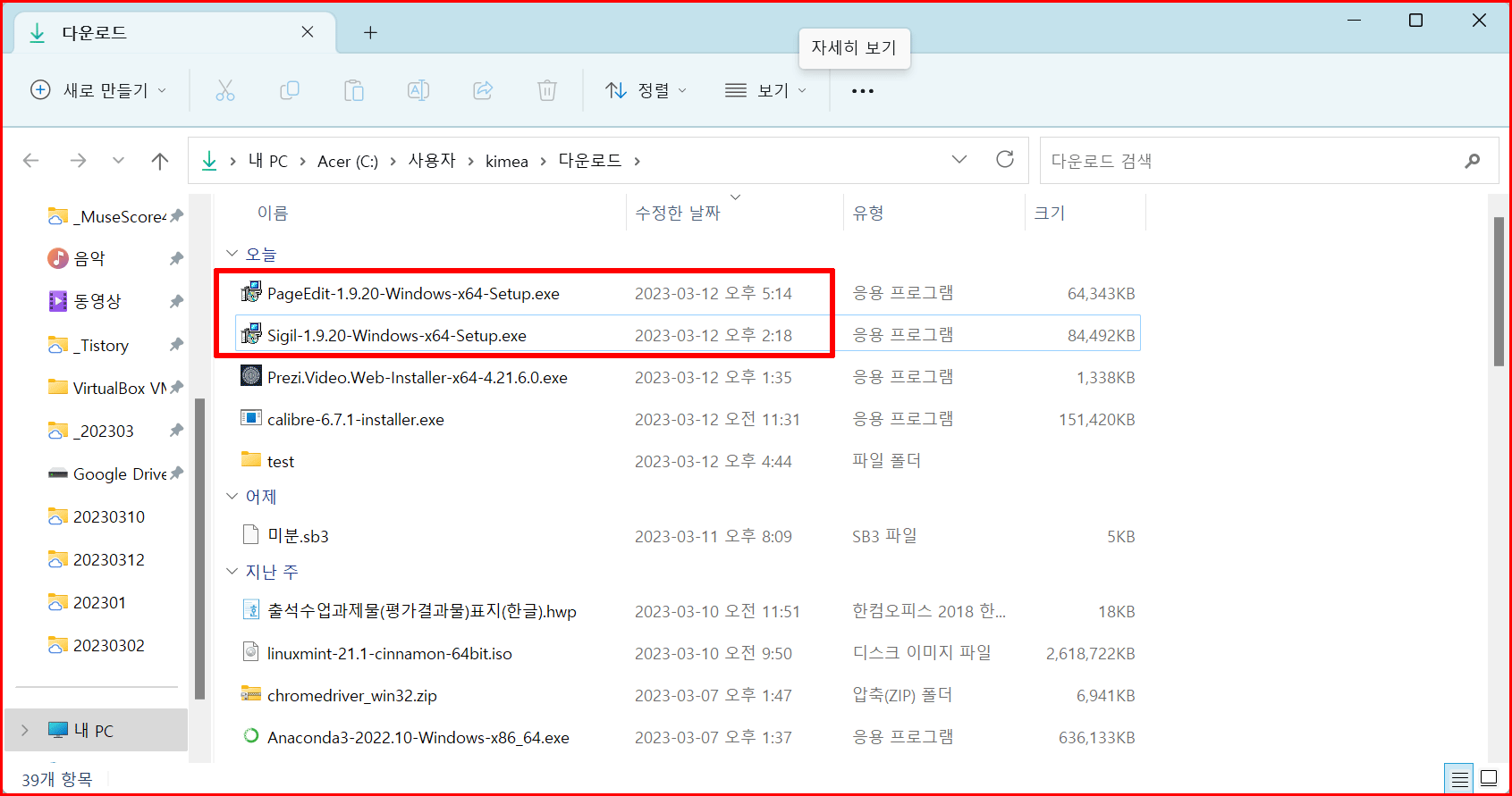 시길은 모든 플랫폼에서 가능합니다. 맥에서도 리눅스에서도 시길을 설치하여 전자책을 만들 때 사용할 수 있습니다. 여기서는 윈도즈용으로 다운로드합니다.