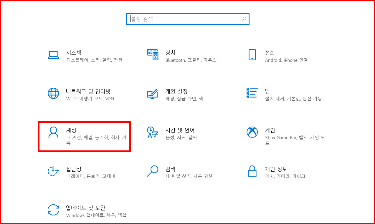설정에서 '계정' 항목을 선택합니다.