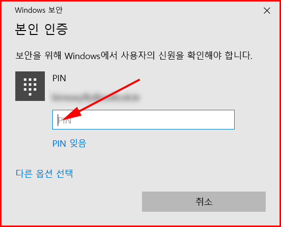 본인 인증을 거칩니다. 이것은 시스템을 함부로 수정할 수 없기에 당연한 절차입니다. 로그인 방법을 전환하려는 사람의 아이디를 확인하는 겁니다. 그동안 사용했던 자신의 핀 번호를 입력합니다.