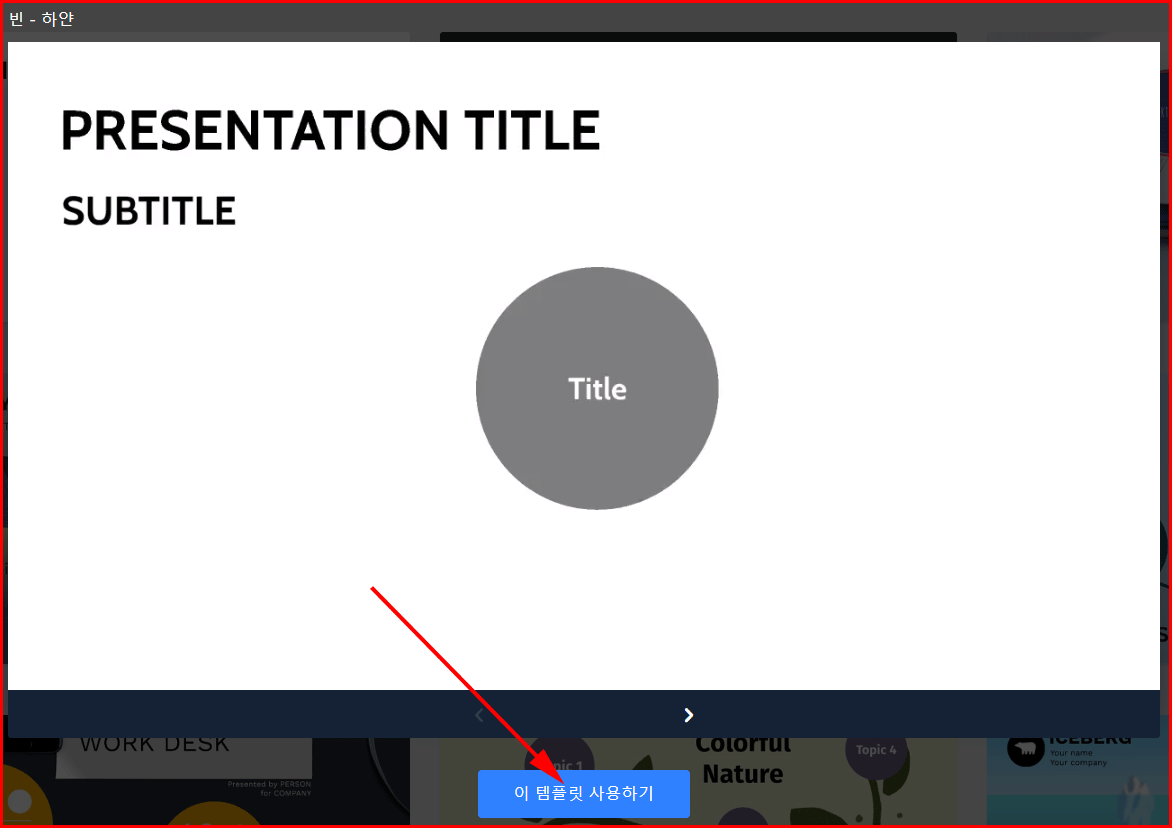템플릿을 사용하지 않고 시작하려면 프레젠테이션 영역에서 '빈 여백으로 시작하기'를 고릅니다.
